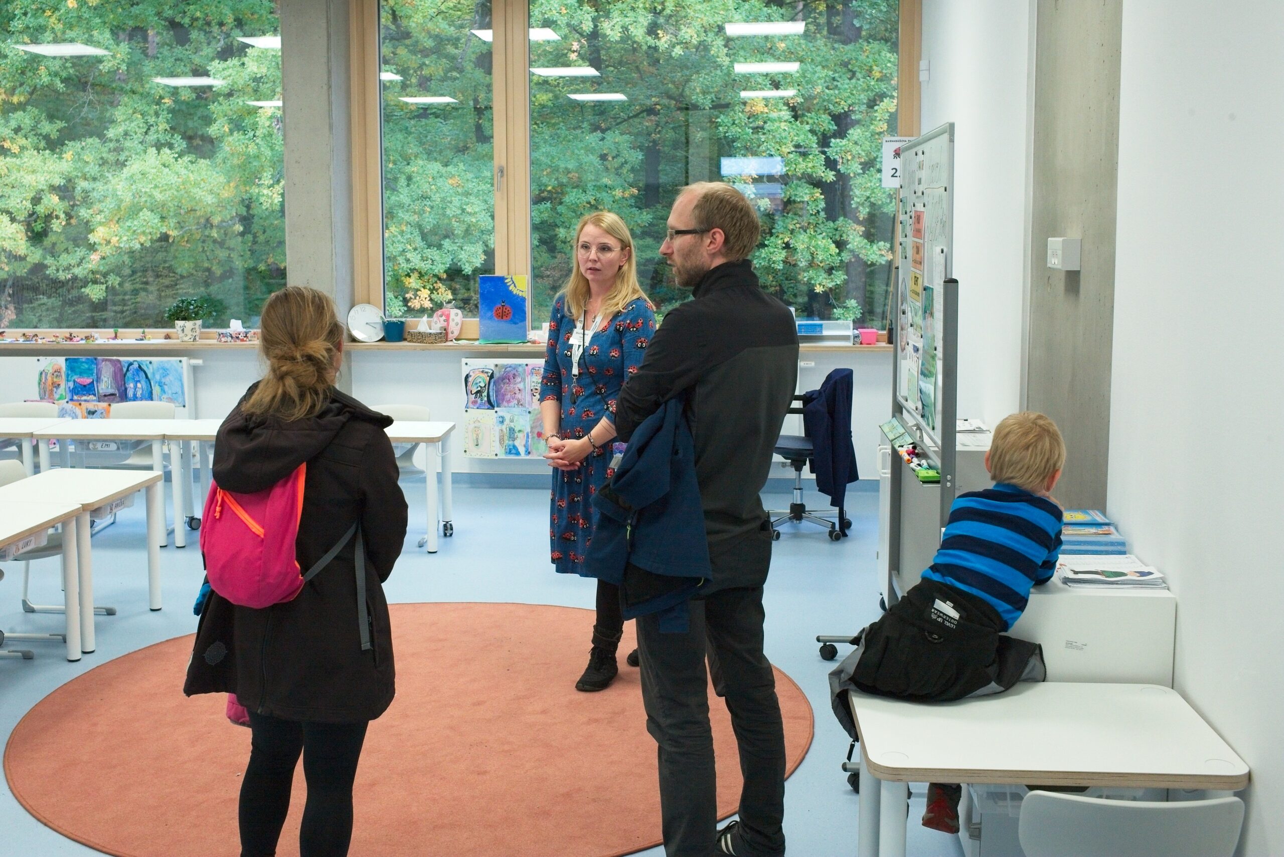 Prostor školy je jako otevřený „lesní klášter“, který je flexibilní jak vizuálně, tak funkčně. Slouží jako vstup, jako chodba, jako krytá venkovní plocha, jako prostor pro shromažďování, jako neformální učebna, učící krajina a mnoho dalšího.